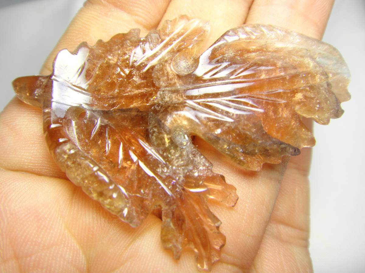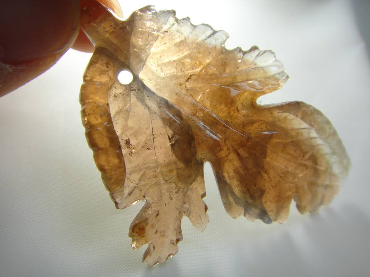 天然石 バイカラートルマリン 高品質! 特大葉っぱ彫り 約81.5ct