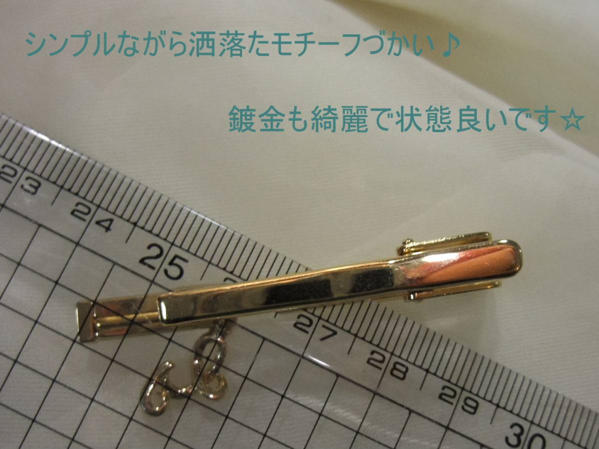 スタイリッシュなゴールドカラーメタル系♪デザインはややビンテージレトロタイプ♪クラシックなタイプの金色メタリックタイプのネクタイピンタイバー♪美品ですが古いお品で保管期間長いので多少経年感ありです☆シンプルスタイリッシュなデザインで、マネークリップ代わりに使っている若者も♪粋でちょい悪親父系や英国スタイルやビンテージアンティークデザイン系小物がお好きな方にも☆