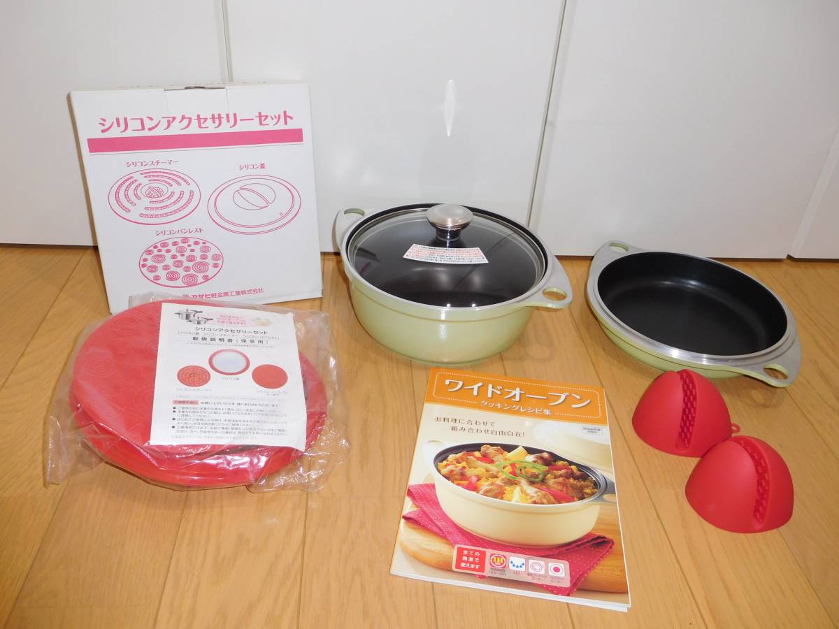 アサヒ軽金属◆ワイドオーブン(限定色ライム)シリコングローブとシリコンアクセサリーセット(蓋・蒸し器・鍋敷き)付き