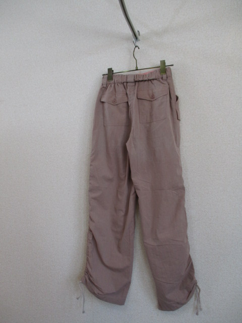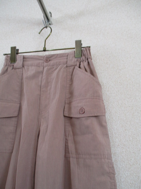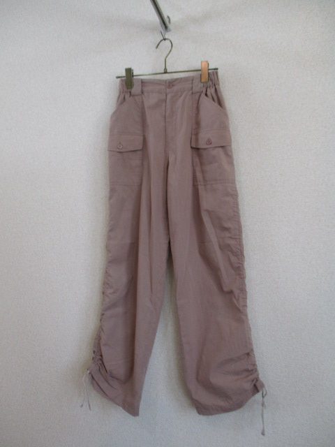 商品紹介 | グレーも混ざったようなくすんだピンクのパンツです。 カーゴパンツに付いているような蓋付きのポケットが付いていて、 ポケットの下から裾にかけて紐が通っています。 紐を絞ることでギャザーを寄せてはくこともできます。 《素材》 ポリエステル65% 綿35% |