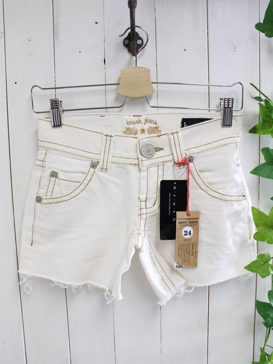 新品*A&Kei Jeans/ブラッシュ brush*ホワイトデニム ダメージ ショートパンツ(24)定価5,900円【586-8653】