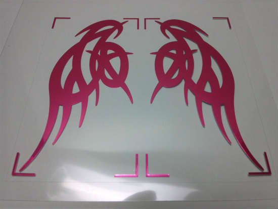 透明のフィルムに印刷されているタイプのステッカーではありません。絵柄にそってシートを切り抜いたカッティングステッカーとなります。透明の転写シートがステッカーの上に貼られていますので、転写シートごと台紙から剥がし、貼り付けたあと転写シートを剥がすと塩ビ素材の耐久性の高いステッカー本体のみが残ります。ウェイクボードはもちろん、サーフボード、スノーボード、水上バイクなどにも使用実績があります。少し技術が必要ですが、ゆるやかな曲面であれば貼る事が出来ます。(伸ばしすぎると白く変色して鏡面感が無くなるのでご注意ください)