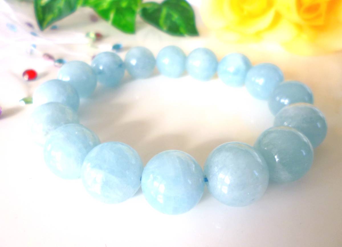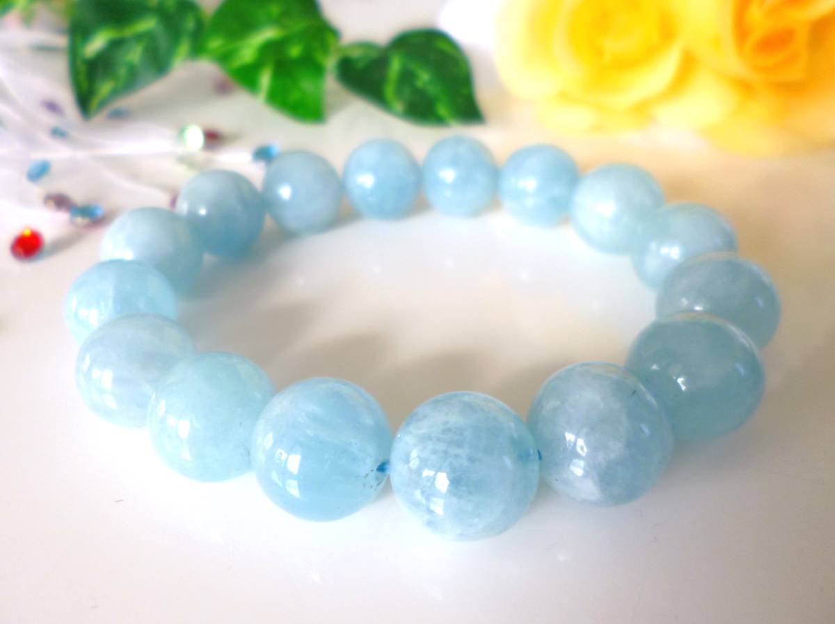 3月の誕生石☆  ☆愛と平和☆   幸せな結婚☆   永遠の若さ☆   喜び   ☆海のパワー   ☆ミルキーアクアマリン☆   大珠13.5mm☆   17.7cm☆   55g