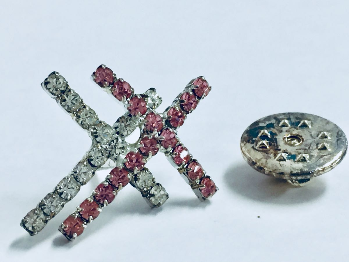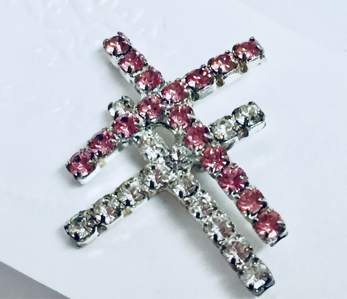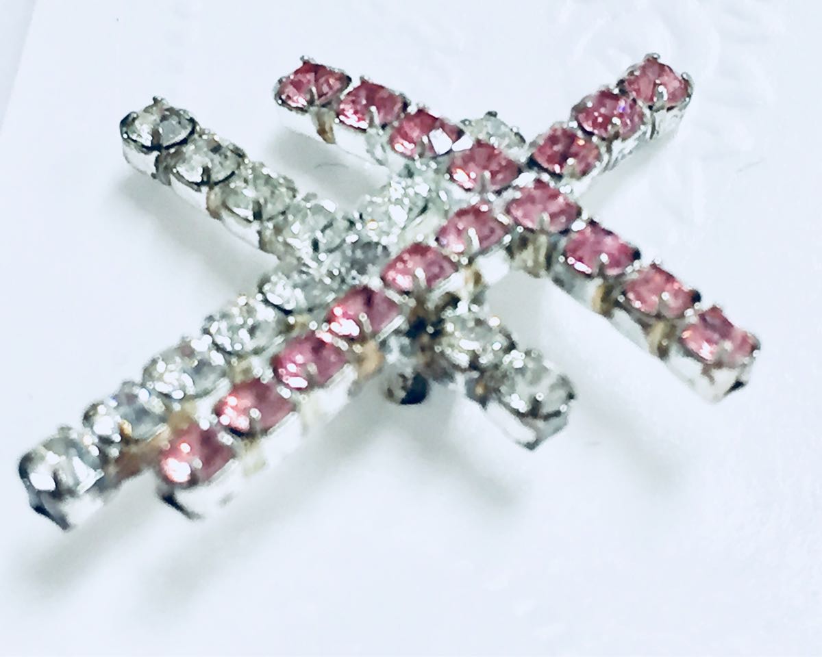 ピンクホワイトクロス十字架ブローチ スワロフスキーSWAROVSKIアクセサリーゴージャス プレゼント梱包無料 有名デザイナーデザイン