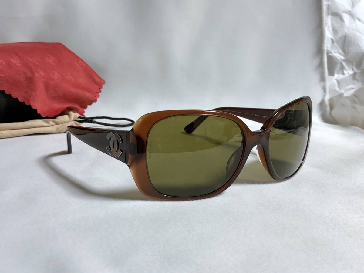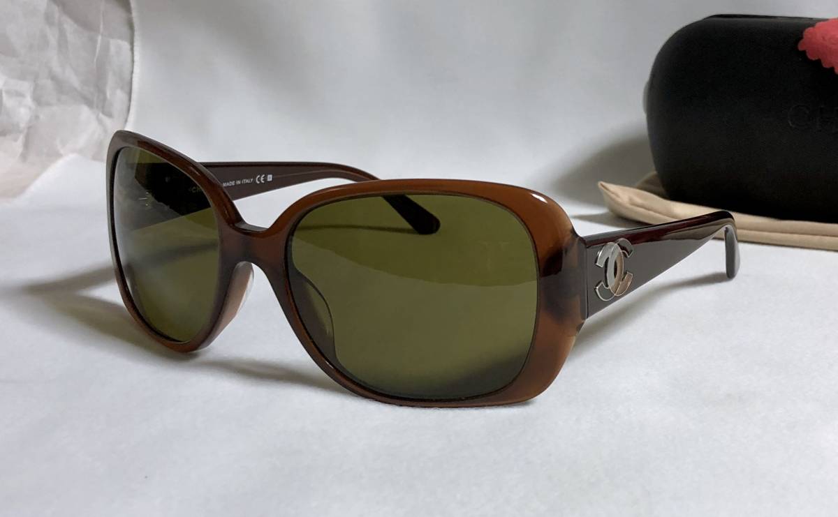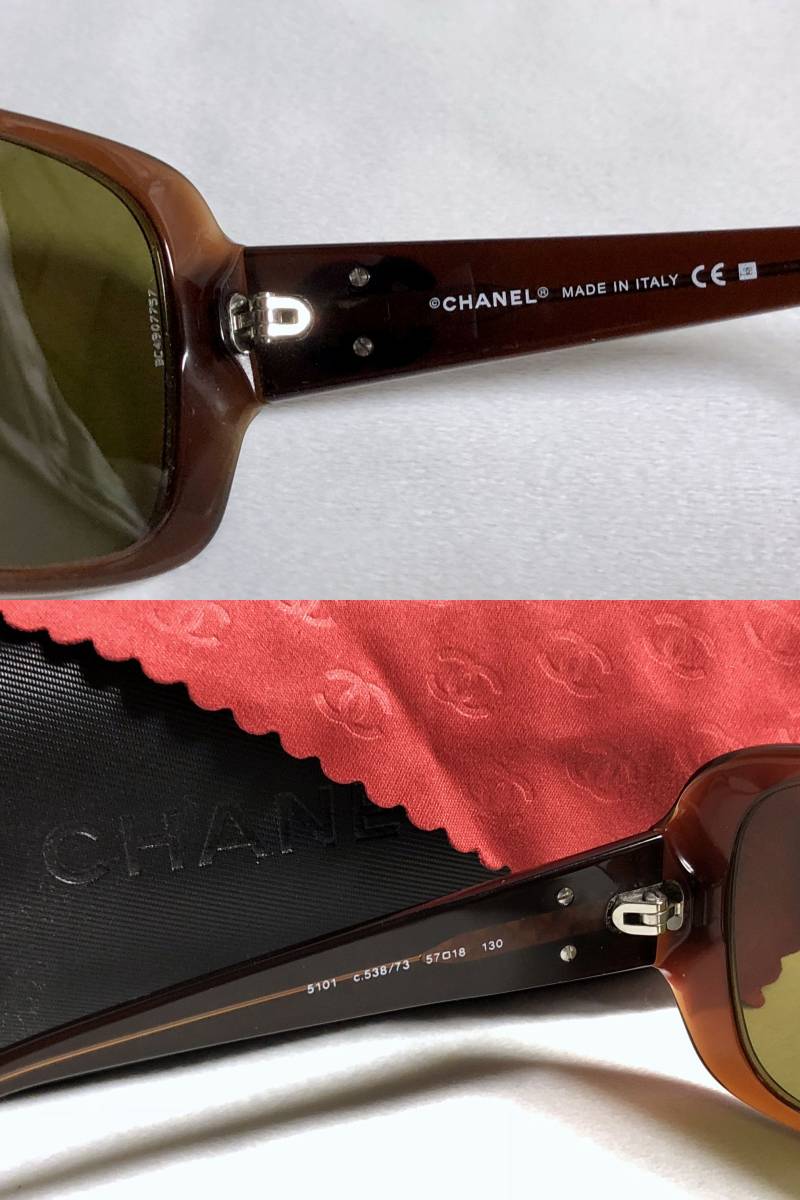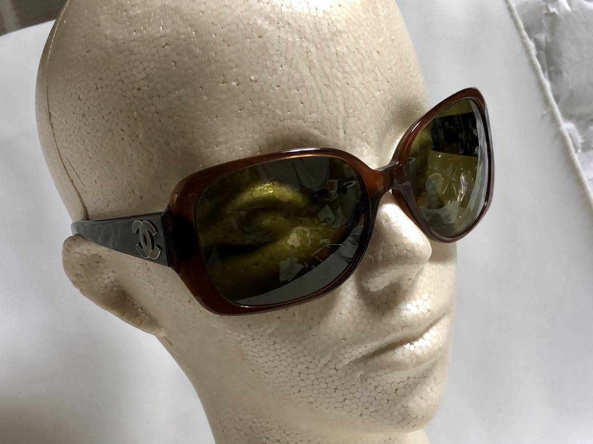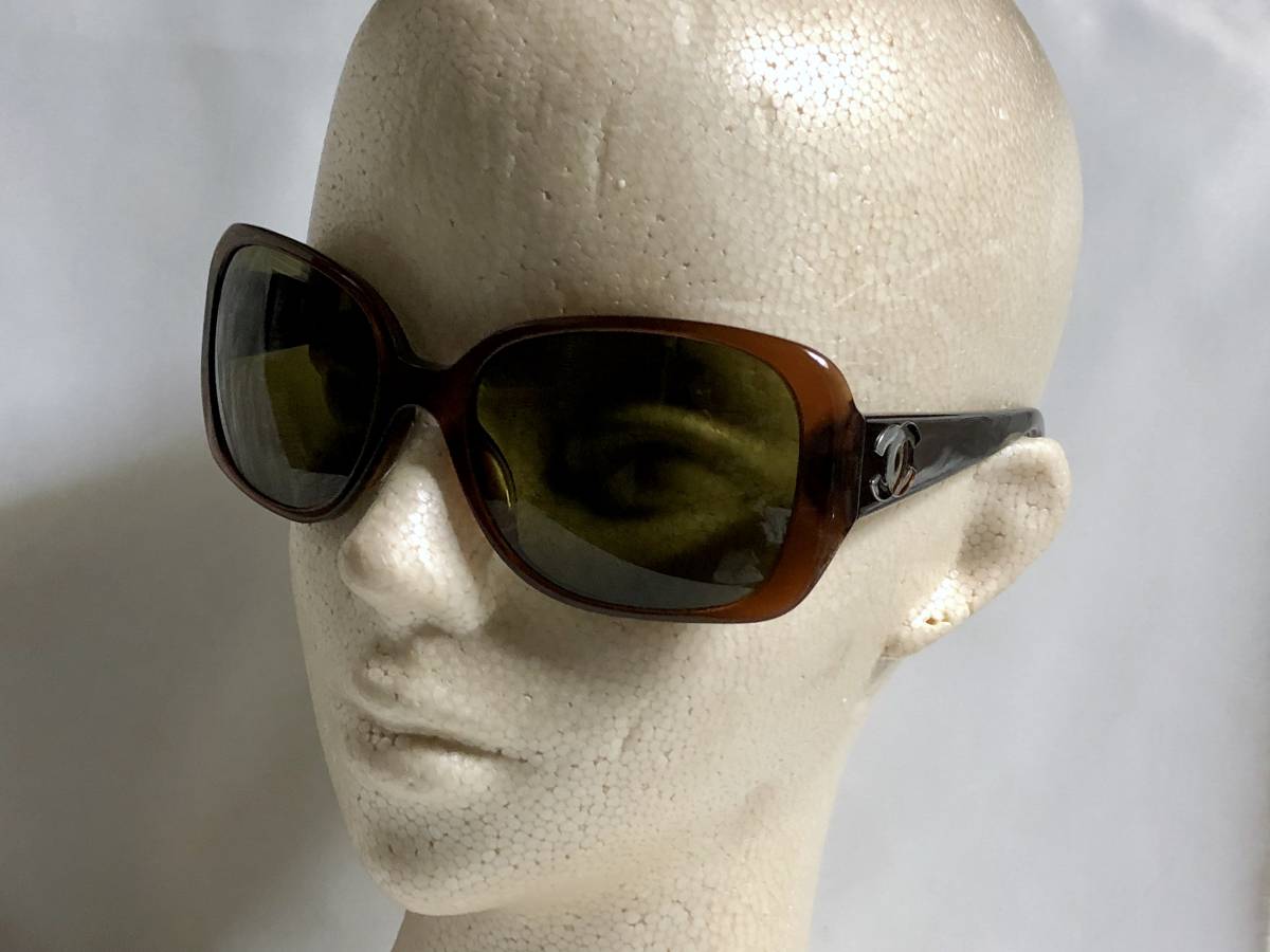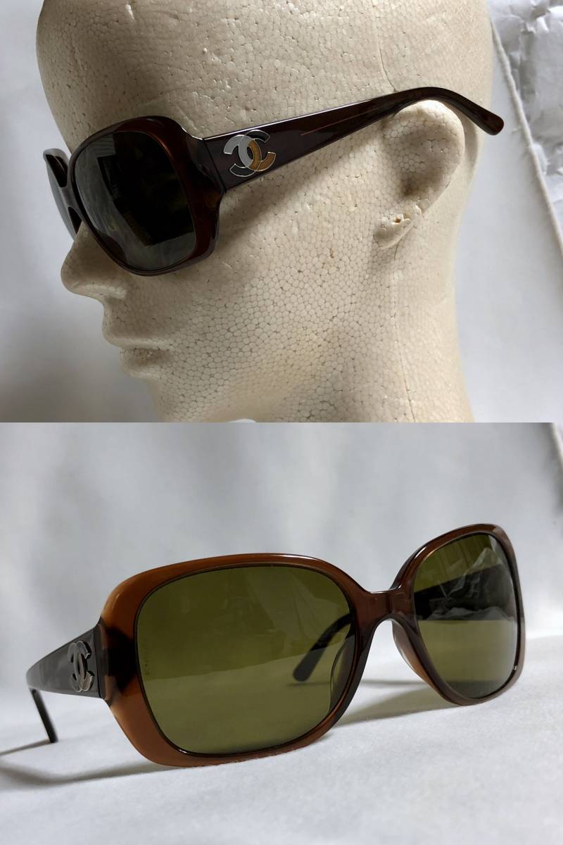 正規美 激レア セレブ愛用 シャネルCHANEL マルチカラーココマークロゴサングラス茶 ブラウン×カーキ系 5101 付属有★ 男女兼用 メガネ〇