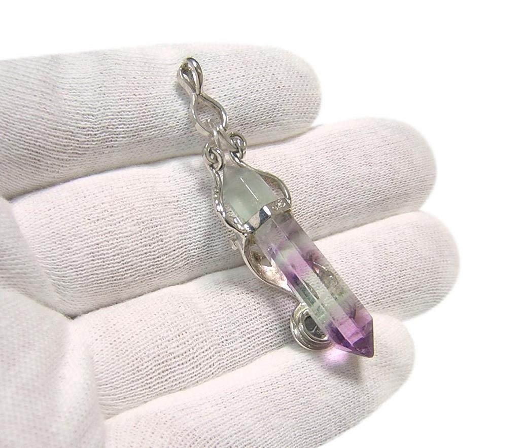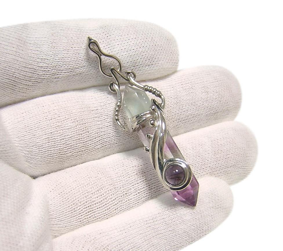 『天然アメジスト』 ダブルポイント ペンダントトップ 紫水晶 銀製 スターリングシルバー