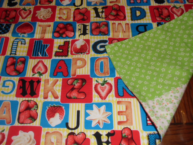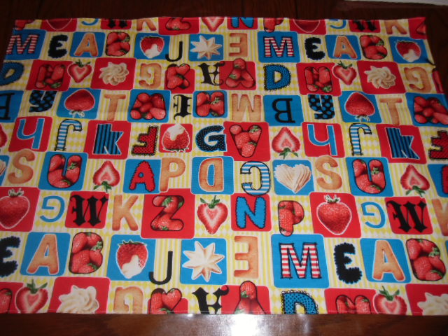 No.28 大判裏付ランチョンマット ハンドメイド  40x60 イチゴアルファベット柄 女の子