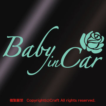 Baby in Car+Rose/ステッカー(ミント・バラ薔薇15.5cm)ベビーインカー**