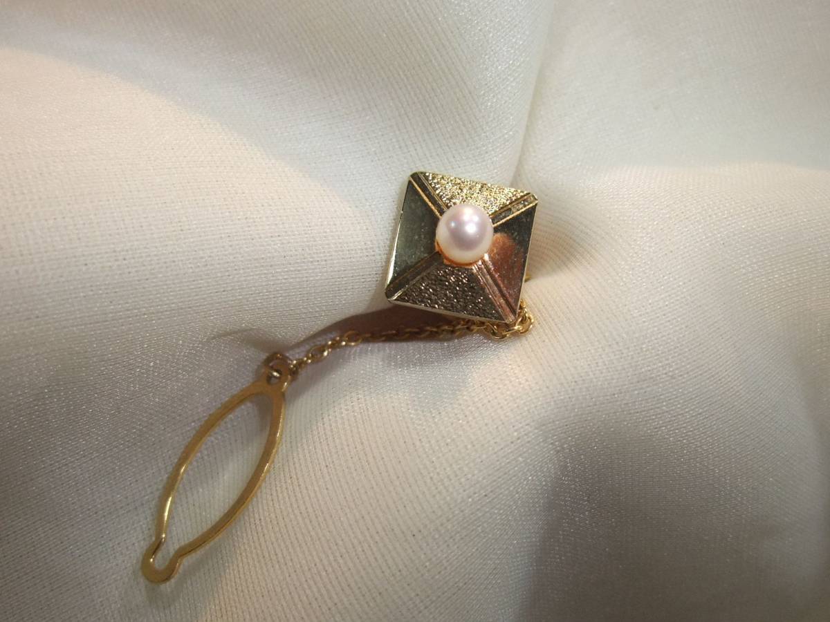 高品質国産アコヤ真珠あこやパール本真珠入り綺麗なラペルピン♪メンズだけでなくレディースのピンブローチにも♪高品質綺麗なテリツヤで巻の良いパールや天然石の1粒タイプの色々シリーズです♪☆古いお品で多少の経年感はありますが状態の良い、usedや新古品です♪タイタックピンとしてだけでなくピンブローチとして女性にも♪古い手持ちコレクションより処分ややヴィンテージコンディション☆