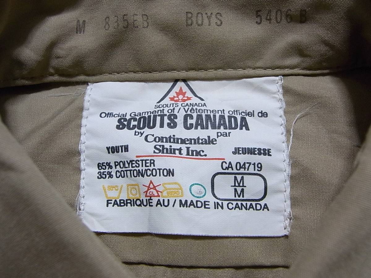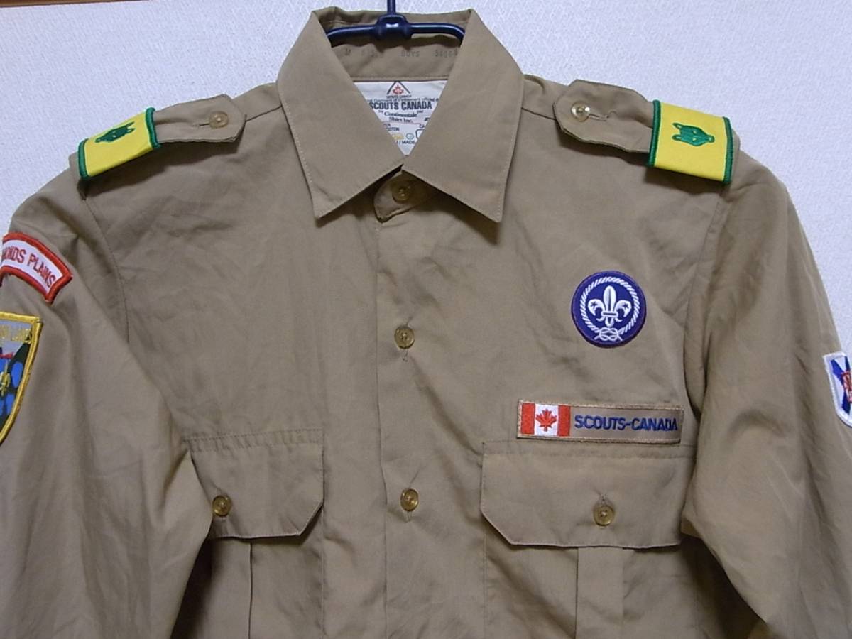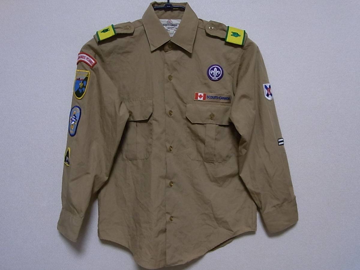 即決USA古着★BOY SCOUTS-CANADA★ボーイスカウト長袖シャツ★ベージュ★ワッペン
