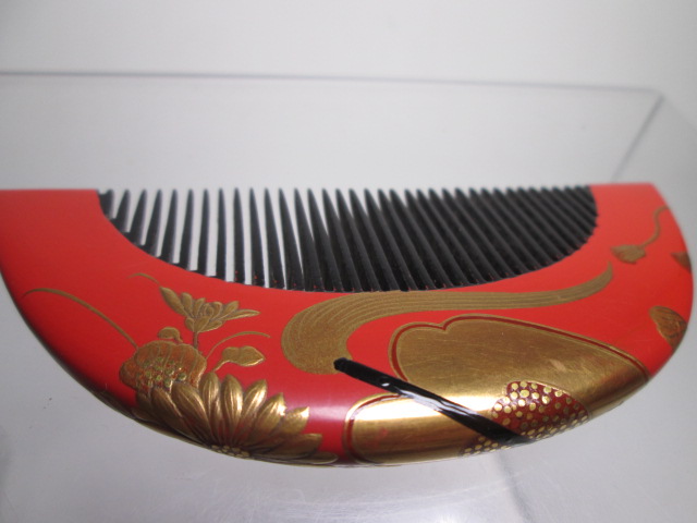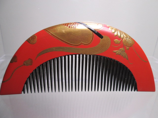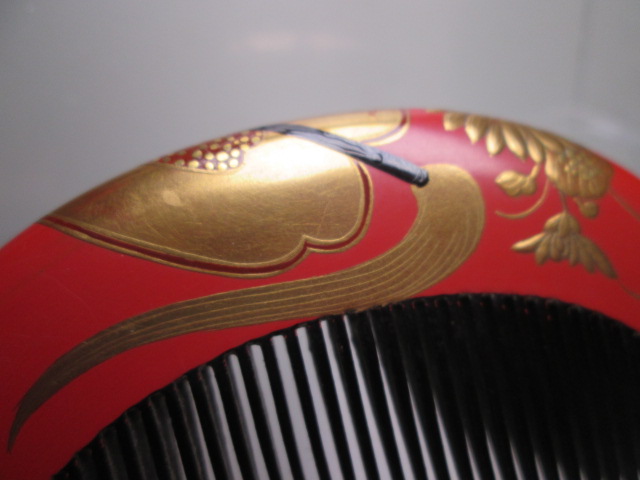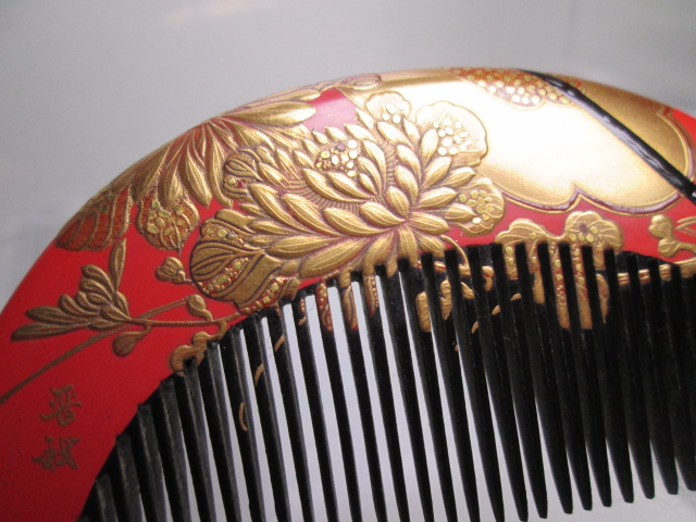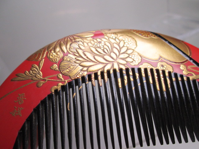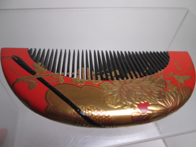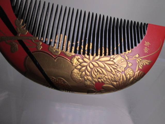 【江月】アンティーク・在銘 本鼈甲金蒔絵軍配に菊花図の櫛