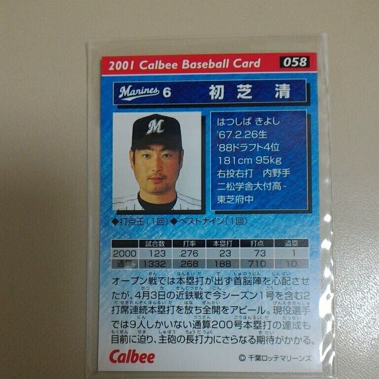 カルビー2001 058 初芝清(千葉ロッテ) ゴールドサインカード