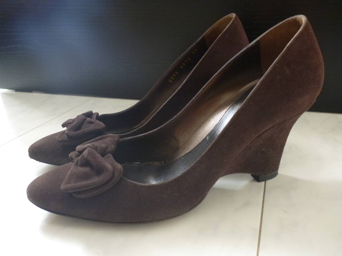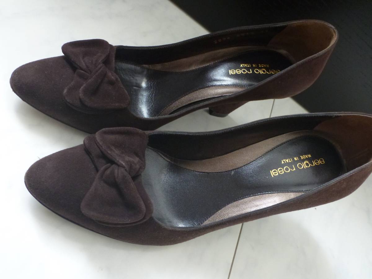 4万 セルジオロッシ(Sergio Rossi)茶 ブラウン 本革 スウェード リボン パンプス 24