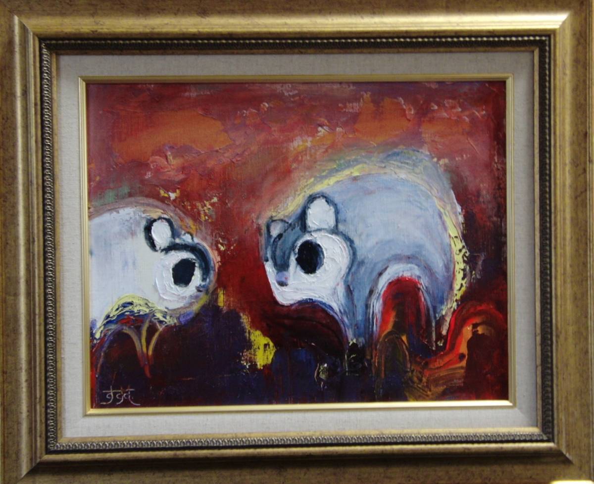 ≪国美協≫関口進、『エゾ・モモンガ』、油彩画、F6号:40,9×31,8cm、油絵一点物、新品高級油彩額付、直筆サイン・真作保証付