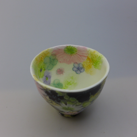 ★お買い得★ゆずりは窯作★湯呑★手描き★平安間取花★★希少入荷です。
