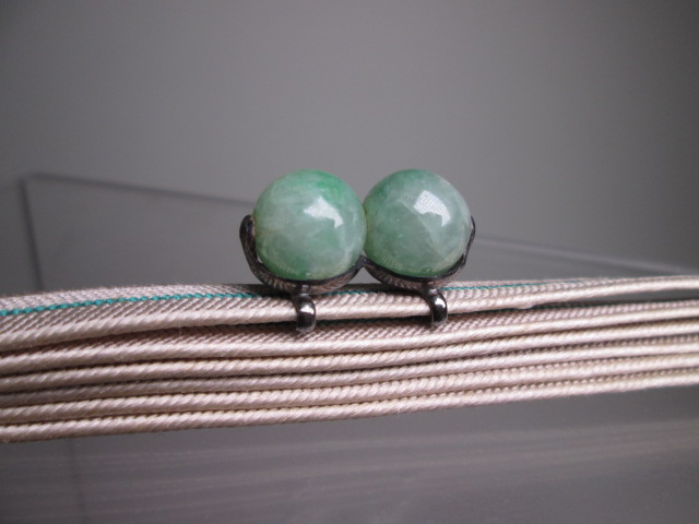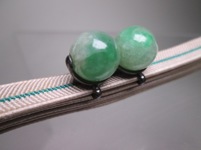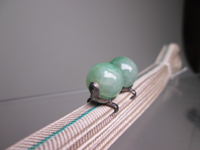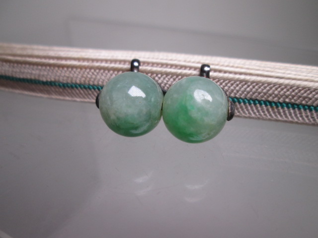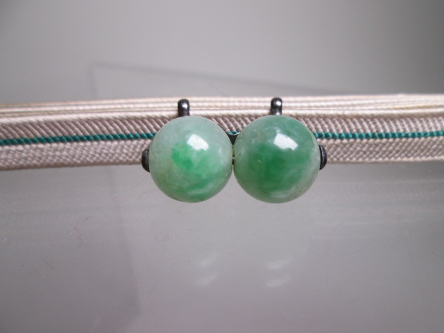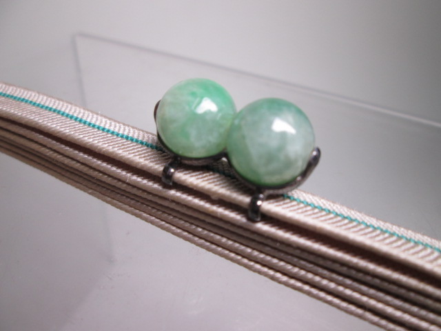 【江月】アンティーク・銀製 本翡翠 1,1cm玉の帯留め