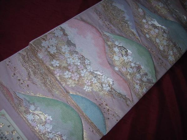 丘--3本から選べます--。パンフレットつきの販売袋帯と違い、1本1本が名門機屋の200有余年の歴史の重さをうけついで、織られています。今回はその織屋さんのの中でも、個性的な丘(上から順に、薄いクリーム、抹茶、薄いくすみ桃色地)帯を3本から1本選んでいただきたく出品いたしました。1本のお値段です。3本ともご入用のかたはいないと思いますが、3本ご入用の方は、『入用数1x落札金額+入用数2x123000円』でお譲りできます。新品み仕立て品。絹100% 金属糸等使用