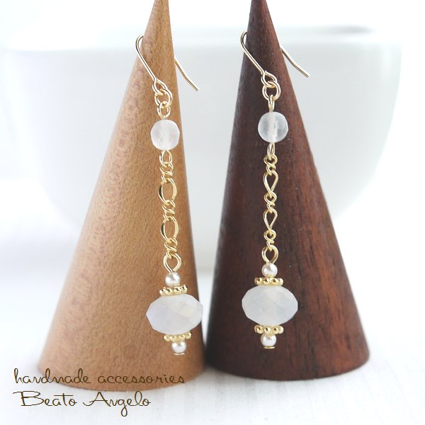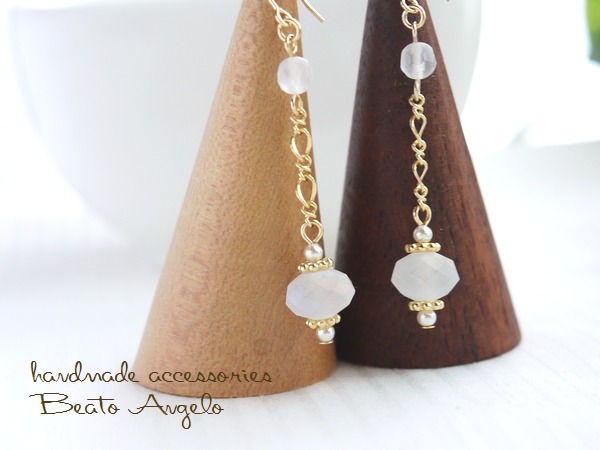 ◆◆+angelo+ボタンカットビーズとスノークリスタルのピアス(p-086)G クリスタルマットAB ホワイト 冬