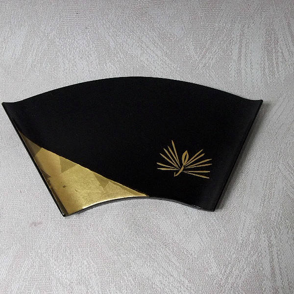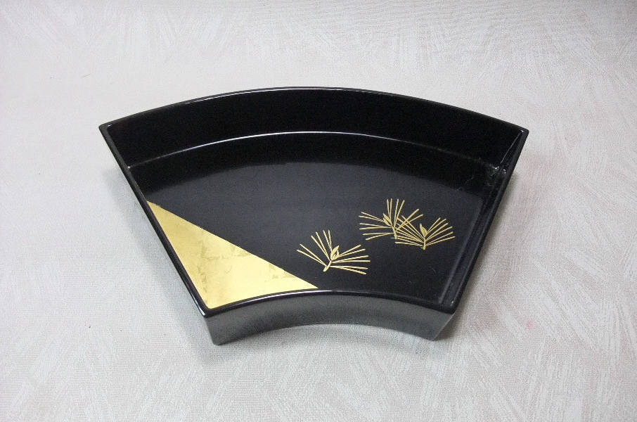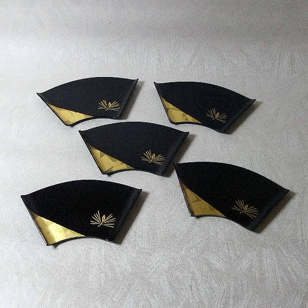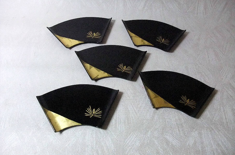 本漆器で金蒔絵の寿末広 菓子器揃。
