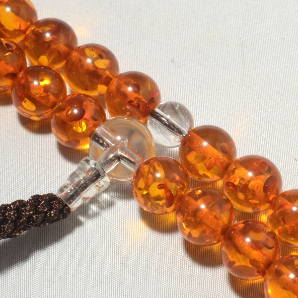 商品説明 | 主玉(新コハク(Pコハク)) 約 10mm 天玉(水晶) 約 8mm 親玉(水晶) 約 12mm 輪の引き伸ばし長さ 約 53cm |
