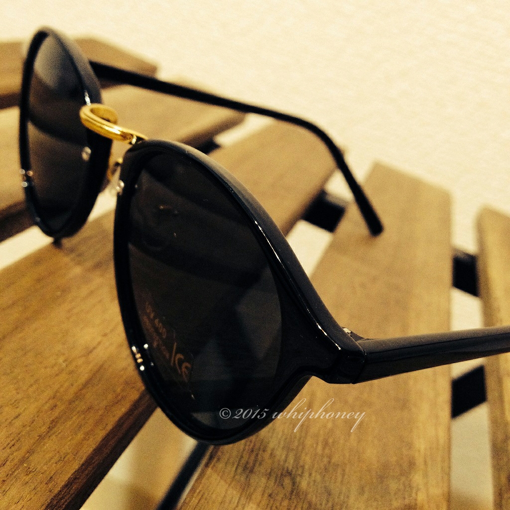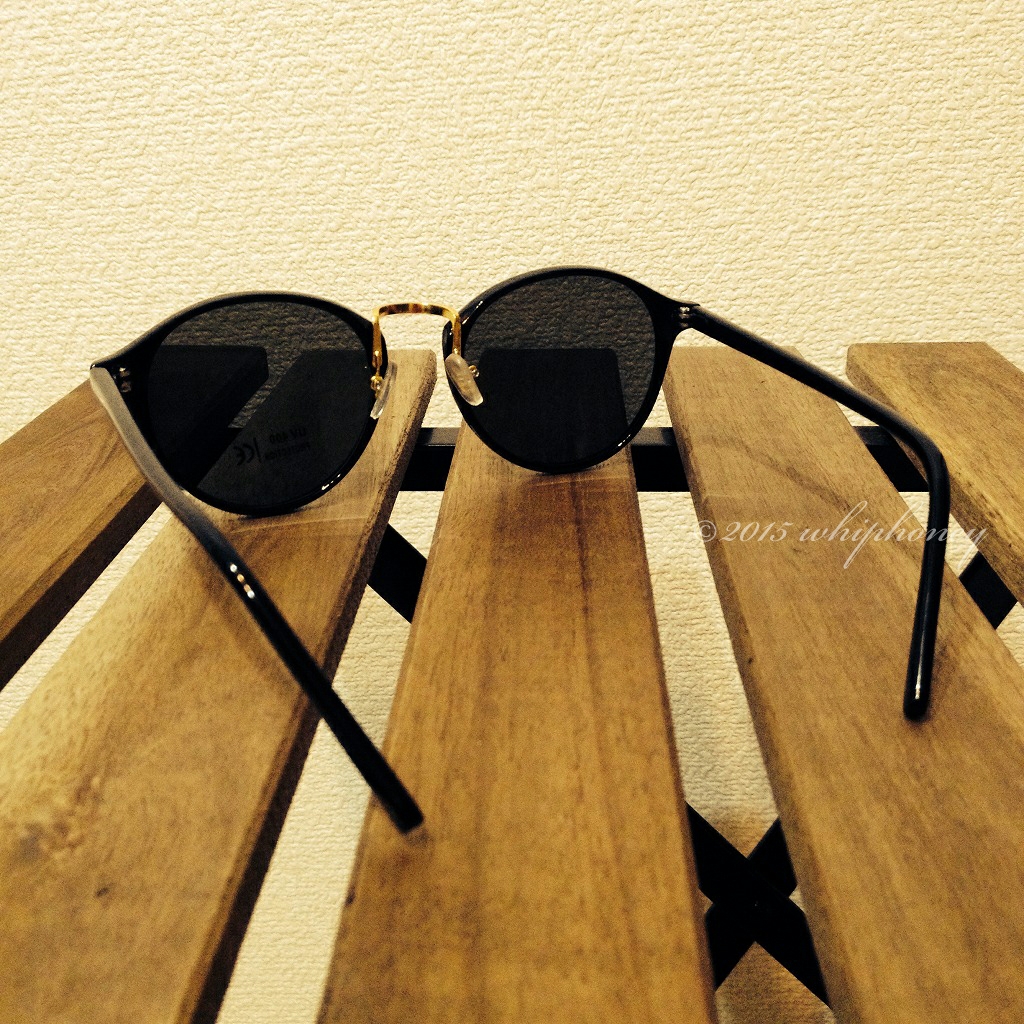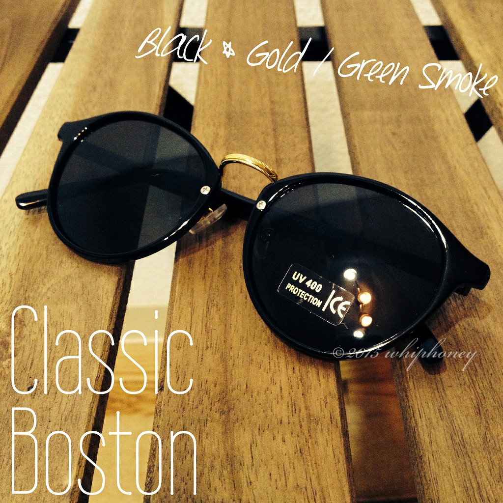 ラウンドボストンだて眼鏡ブラックゴールドフレームスモークサングラス