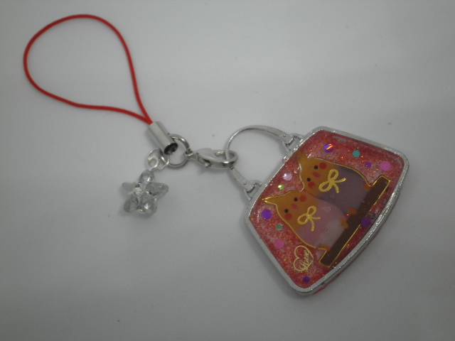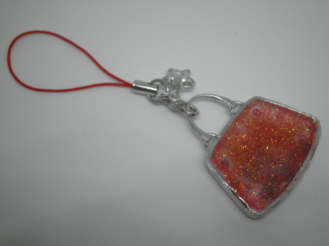 サイズ3.5X3.5cmの、バッグ型枠にレジン加工して、ストラップを作りました。