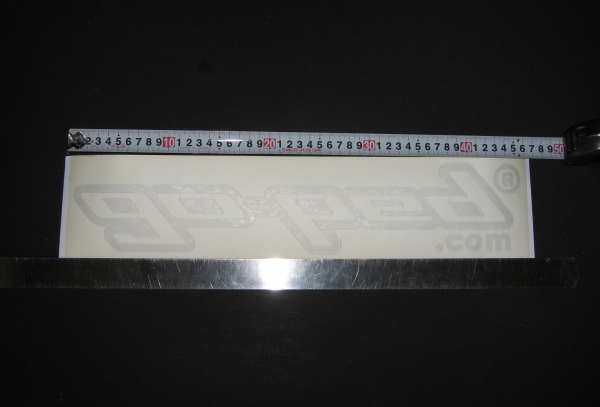 米国製ゴーペッド(GO-PED)スクーター用部品:約465mm(台紙)のGO-PEDロゴ・ラベル(シルバー)です。1枚-1,840円の商品を2枚-800円での出品。