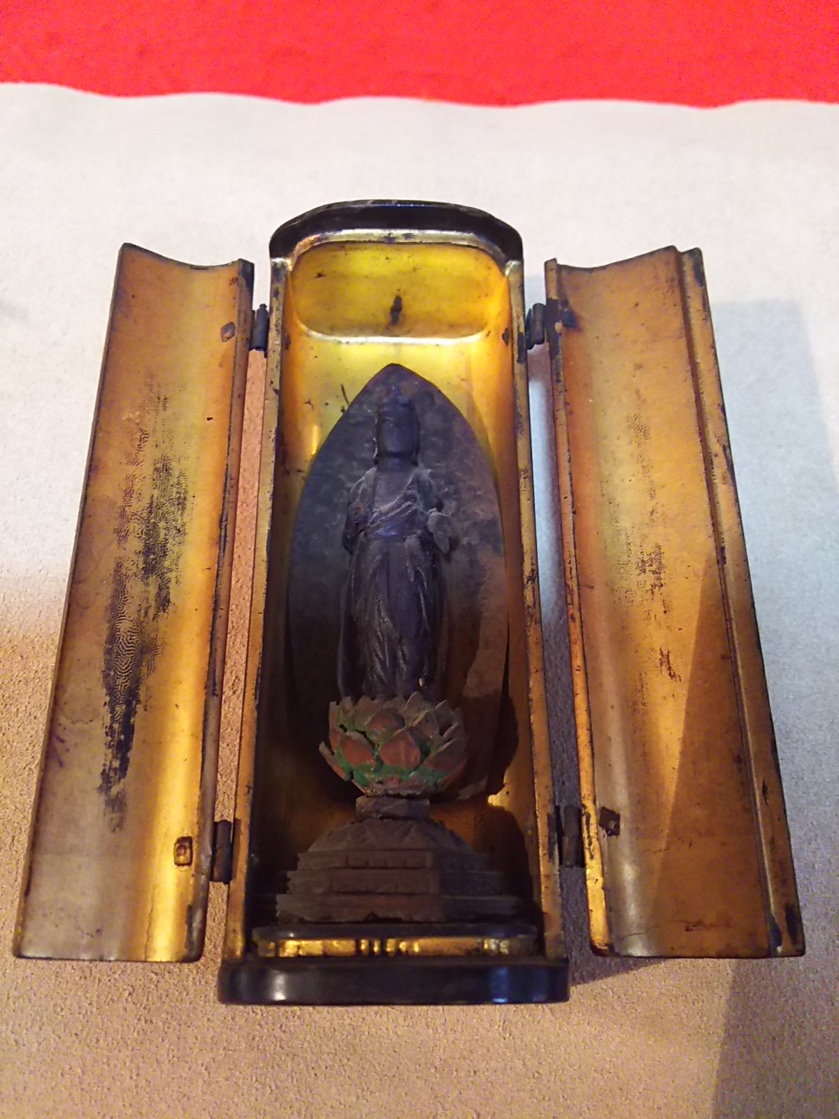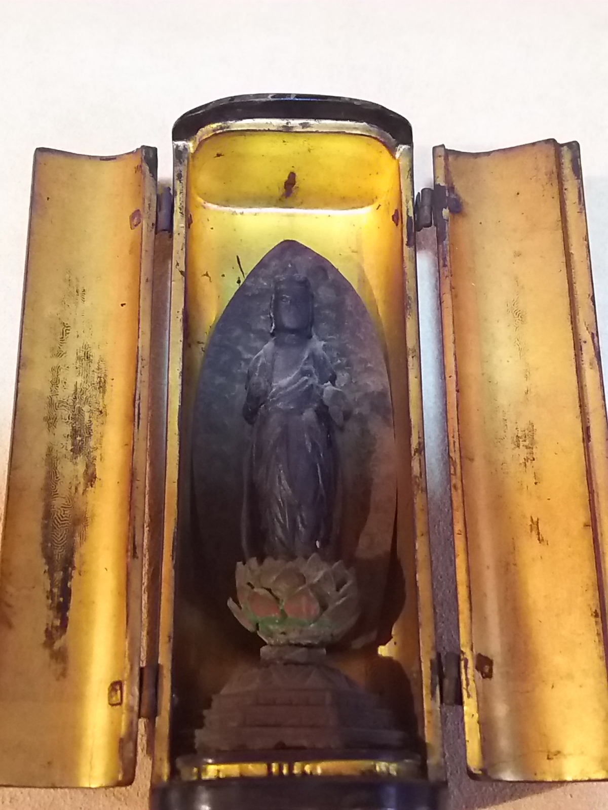 (鳥羽庵)うぶだし骨董時代江戸期小型観音菩薩立像 珍品(吊り輪付逗子) サイズ逗子サイズ横4,5センチ縦12,6センチ 仏像10,2センチ 3,9センチです。 商品状態説明 江戸期観音菩薩立像左手首部分欠損あります。格安出品致します。逗子もとても珍しい吊管がついてます。 時代品につき状態良好です。詳しくは、写真参照でお願いします。 骨董品につきノンクレームノンリターンでお願いします。 発送は、ゆうパック60サイズにて発送致します。 落札後48時間以内で連絡できる方4日以内で入金出来る方入札待ってます。