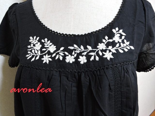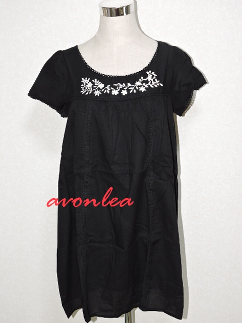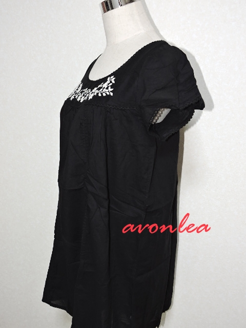 ベルメゾン コットンチュニック お花刺繍入り♪ ブラック M インド綿使用(暮らす服/千趣会/トップス/黒*