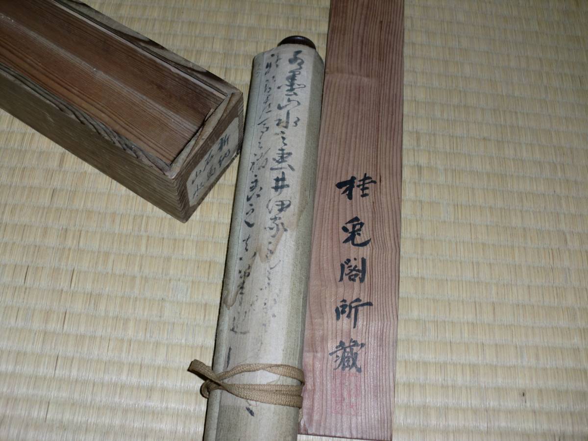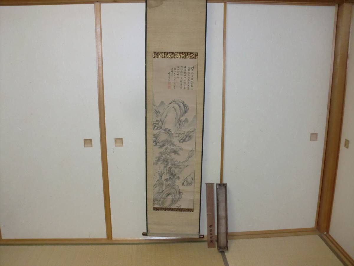 状態は、画像通りですが、古ーい作品にて 表装最上部に微細な染み跡等ありますが、本紙は、極微細な汚れ等あるも綺麗な渋ーいアンテイークコンデイションです。