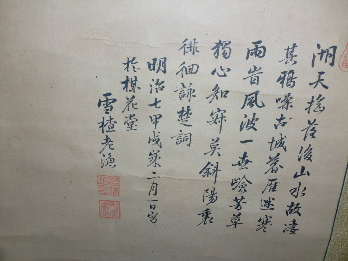 【模作】掛軸 雪サ老漁 トテモ渋ーい石馬山水圖 徘徊詠楚詞付 木箱