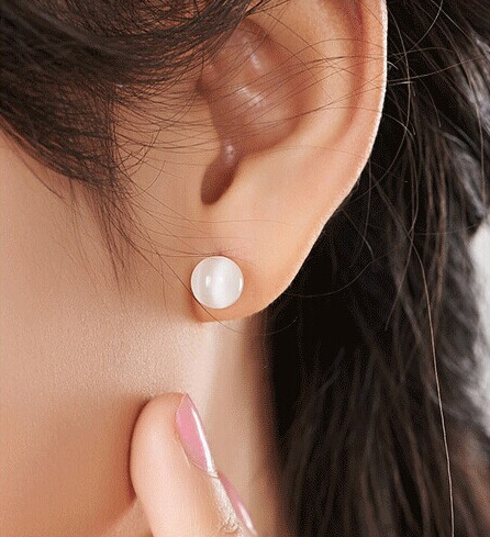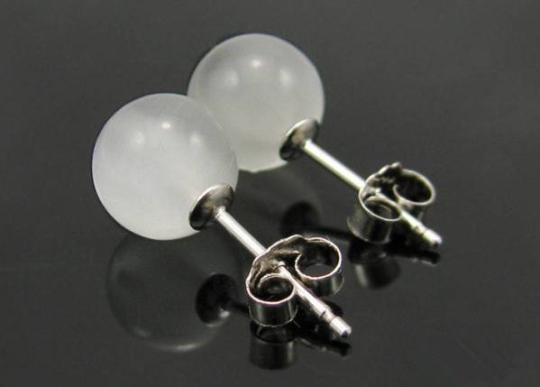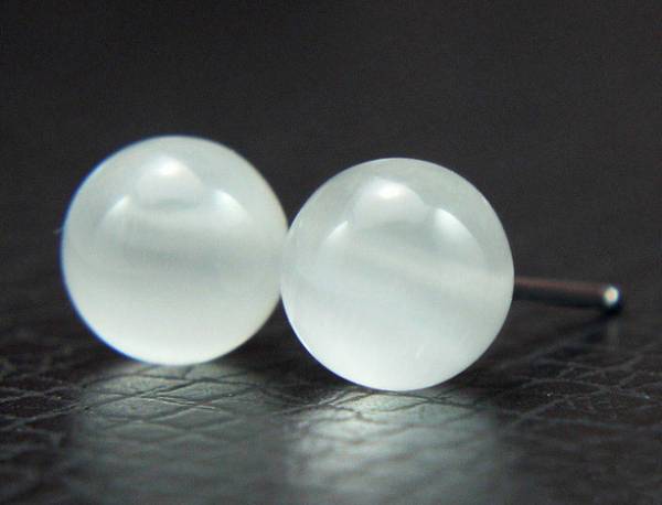 ♪ ピアス キャットアイ ストーン ホワイト オパール風 送無