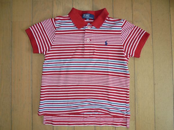 商品説明 美品★ラルフローレン★赤ボーダー半袖ポロシャツ、ナイガイ★100