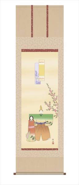新品 掛軸 立雛 掛け軸 雛 桃 人形 節句 ひな祭り