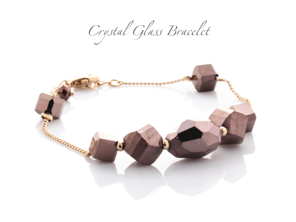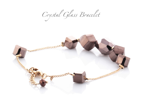 値下げセール!◆クリスタル大粒ビジューブレスレット◆ゴールド ビーズ ブラウン 大人 シック ビーズ ハンドメイド ノーブランド おしゃれ
