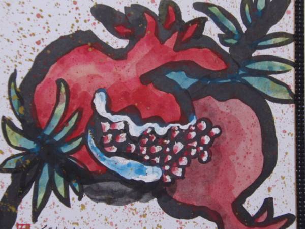 加藤世紀・Kato Seki,真作保証。国際美術家協会、名誉会員。日本美術家連盟会員、作品名「2つのザクロ」直筆サイン入りのミクストメディア主に水彩(鉛筆、ペン、オイルパステル等を混ぜ合わせたもの)作品はフィキサチーフ(定着液)をかけてありますので、色落ちや汚れを防止してあります。絵画サイズ27cm×24cm、絵画の状態は良好。新品額付です。額のサイズは約35cm×30cm、額枠は黒色、マット付、ガラス付の新品です。≪高級額装希望のお客様は、別途額代金10000円です、新品、薄いカラーパール色・金枠付き、ガラス、マット付きです、≫作品の裏面にも、直筆サイン、題名、記載有りで価値のある作品ですのでよろしくお願い致します。【加藤世紀略歴 1940  藤野町に生まれる 1981  サロンデボザール展特選賞 1984  日本水彩画展連続入選~1990(上野都美術館) 1985  神奈川水彩画展入選 1987  鳥取県智頭町版絵コンクール大賞 1989  箱根彫刻の森美術館ガラスビンデザインコンクール優秀賞 1992 多摩秀作展入選、水彩連盟展連続入選 1993 さがみ美術展神奈川新聞社賞 1994 さがみ美術展会長賞、千葉県大原美術展入選 1996 オーストリア1000年祭芸術の家ジョイント展 朝日新聞社朝日チューリップ展KLLオランダ航空賞 1997 アジア、アフリカ、ラテンアメリカ交流美術展 1999 韓国国立美術館600年記念展 トルコ、デールメンデレ町企画加藤世紀展 2000 多摩信用金庫企画個展、銀座一丁目画廊3人展 2001 神奈川県展入選 2008 芸術出版社賞 2014 相模原市議会長賞、その他、多数、受賞、】 岡本太郎より絶賛される、