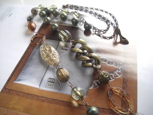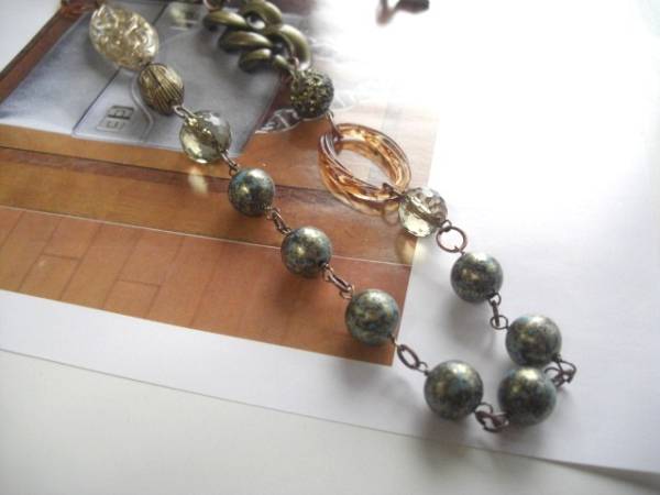 アンニュイな秋色・・シリーズです♪週末の恋人・・個性的な樹脂ビーズを集めてシックな雰囲気のネックレスです♪ 軽いので2連にされたりと色々な表情で楽しんでいただけます♪10ミリから42ミリ位までのデザイン違 いの樹脂ビーズにアンティークビーズや透かしチャームやデザインリングを合わせました♪全長130センチ位で調節自由です♪同じデザインの長さ違いのネックレスやブレスレットも出品しています♪シンプルで飽きのこないいつまでも着けられるデザインを考 えて作りました!ハンドメイドをご理解頂いてノークレーム、ノーリターンでお願い します