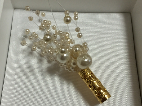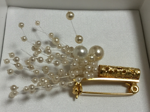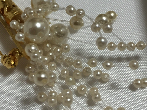 フェイクパールを使用した、花束のブローチです。