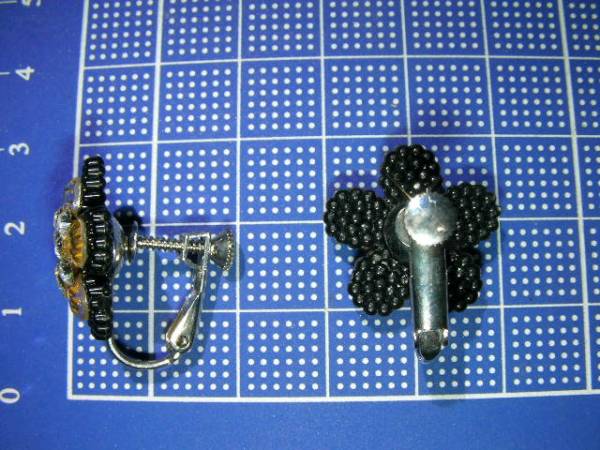 648♪お花 デザイン かわいいイヤリング検黒×クリアレトロ⑧