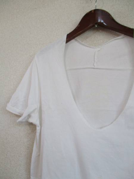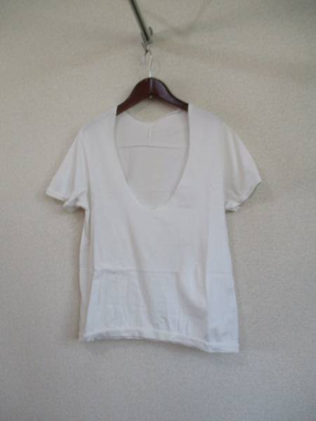 | 商品紹介 | 白の半袖カットソーです。 開きが広めのVネックで、後ろは背中上に切替えがある形です。 《素材》 綿100% |