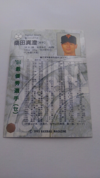 1994最優秀選手MVP !巨人桑田真澄元MLB パイレーツ1995BBM1 |