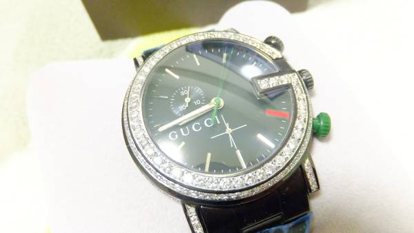 グッチのダイヤモンドウォッチ6カラット(アフターダイヤモンド)になります。ケースサイズは、竜頭込み45㎜になります。状態は新品未使用の展示品になります。フェイスに傷なく、動作も問題ございません。アメリカンジュエリーにご理解ない方は、ご入札をお控えください。また、新品ですが長期保管品となります。その他、ご不明な点がございましたら、お気軽にご質問下さい。※発送できない期間があるため、自己紹介にてご確認下さい。
