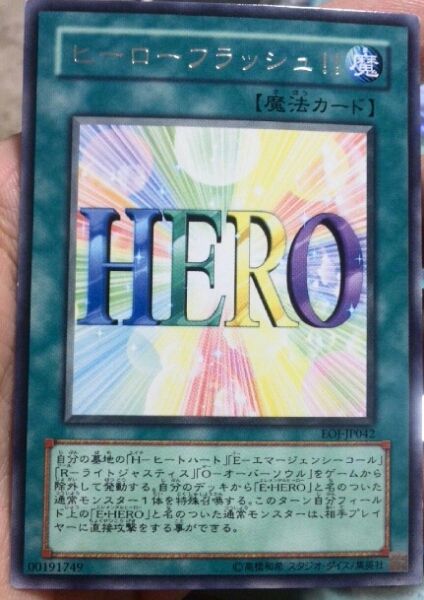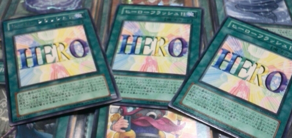 あの国民的人気トレーディングカード「遊戯王」のデュエリストパック十代編に収録されていた、ノーマル「ヒーローフラッシュ!!」の3枚セットになります。