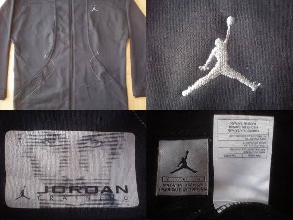 パーカー表面左胸に、裏面右下部に施された、「マイケル・ジョーダン」氏のシュート時のフォームをシルエットで表現したロゴとして知られる「ジャンプマン」と「マイケル・ジョーダン」氏のグラフィックの仕様。