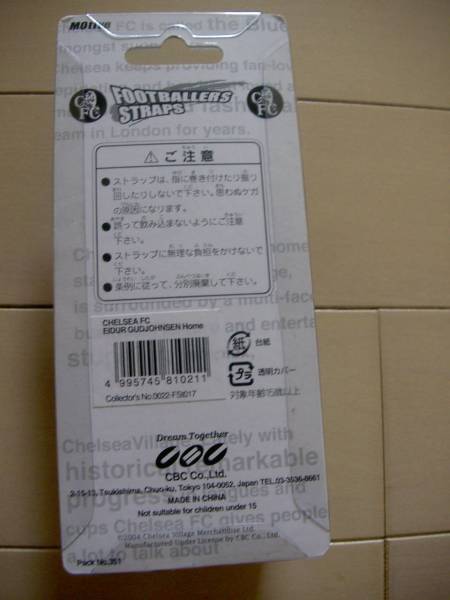 サッカー選手ストラップ、チェルシーの”EIDUR GUDJOHNSEN”です。