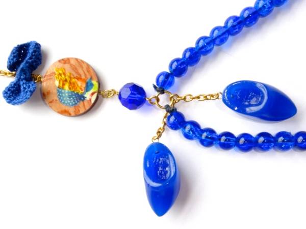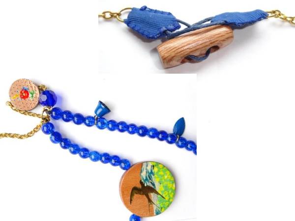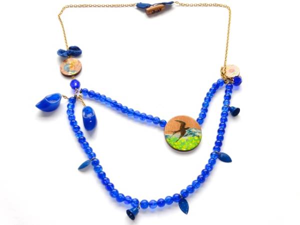 ●フランス N2 エヌドゥ レネレイド ネックレス ビーズ 青 新品 ブルー 靴 木 パーツ 女の子 花 ツバメ リボン かわいい パリ人気ブランド