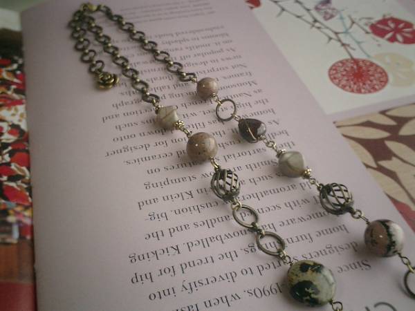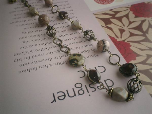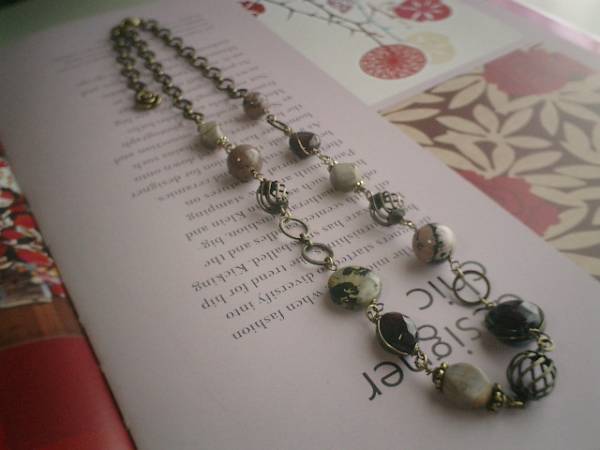 私的・乙女心・・シリーズです♪ニューヨーク仕様・・深い赤のガーネットと個性的な模様のジャスパーのネックレスです♪ワイヤーでおめかししたガーネットは12ミリから14ミリ位までのラフカットです♪ジャスパーは8ミリ、12ミリの丸玉、12ミリのカットナツメ、15ミリ位のコインです♪デザインチャームやデザインチェーンを合わせてアンティークモダンしています♪長さは全長60センチ位で調節自由です♪チョーカー風にされても素敵です♪♪お揃いのブレスレットも出品しています♪シンプルでいつまでも着けられるデザインを考えて作りました!ハンドメイドをご理解頂いてノークレーム、ノーリターンでお願いします