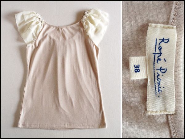 ロペピクニックビジューフレンチ袖シフォンフリルカットソー38ベージュ系 rope pcnic