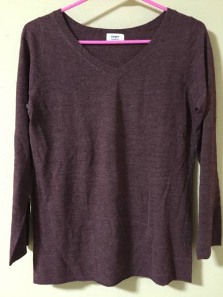比較的薄手のニットです。サイズはフリーで、色はレンガ色です。