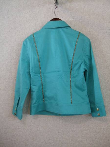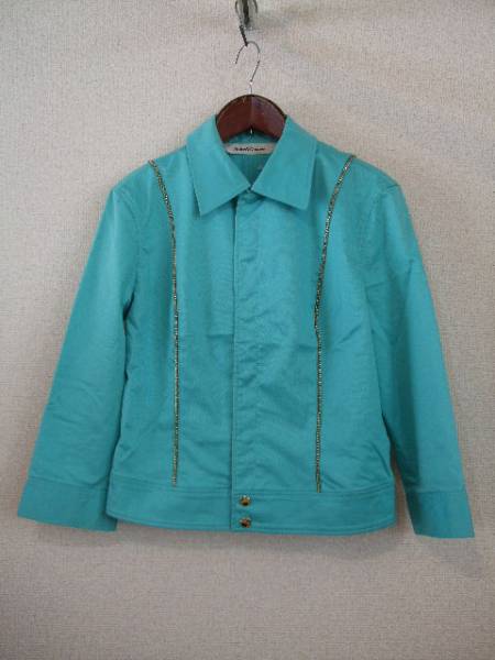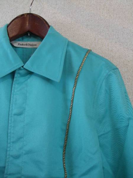 | 商品紹介 | ゴールドのチェーンがデザインのポイントになったオシャレなブルゾンです。 エメラルドグリーンの色合いが綺麗です。 《素材》 コットン60% ポリエステル35% ポリウレタン5% |